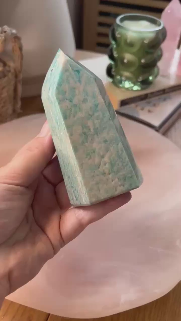 Amazonite is such an classic gal, reliable & soothing as she helps calm the soul. A comfort zone, a childhood friend you can truly be yourself with. Use her to enhance peace, enlighten truth and ease communication.