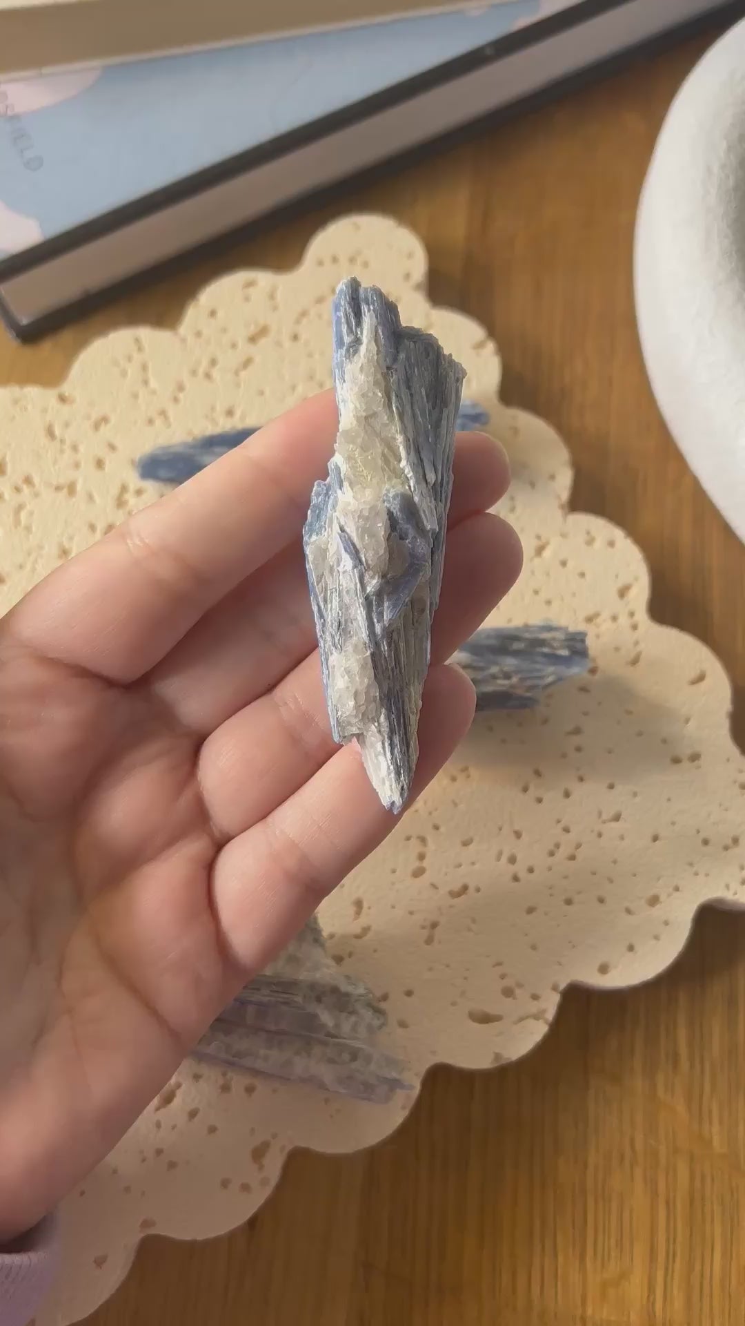 Call her The Guru, blue kyanite is a very spiritual stone, enhancing psychic abilities & lucid dreaming. She protects from negative energy and helps restore & balance the chakras to keep you in alignment.
