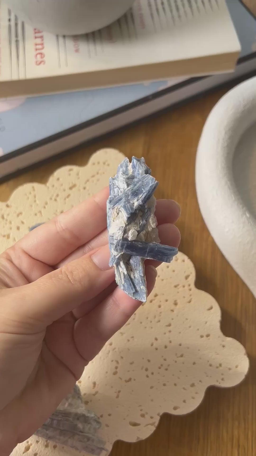 Call her The Guru, blue kyanite is a very spiritual stone, enhancing psychic abilities & lucid dreaming. She protects from negative energy and helps restore & balance the chakras to keep you in alignment.
