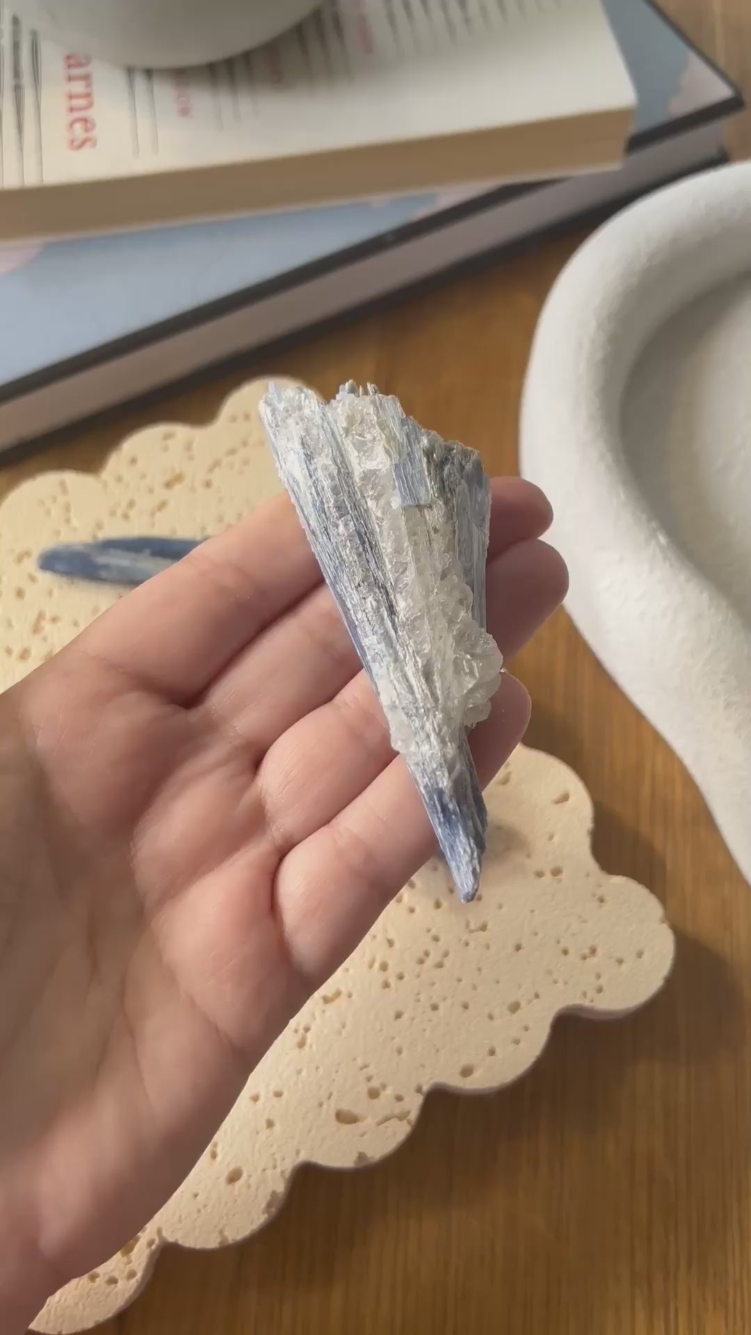 Call her The Guru, blue kyanite is a very spiritual stone, enhancing psychic abilities & lucid dreaming. She protects from negative energy and helps restore & balance the chakras to keep you in alignment.